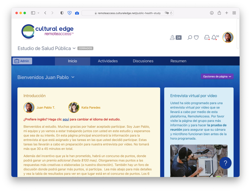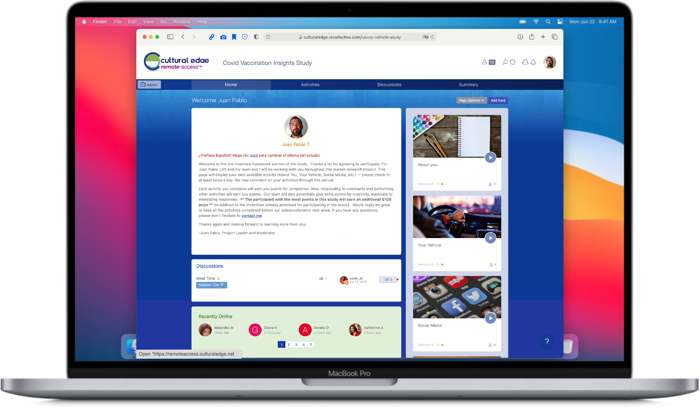 For each project, we program a custom site, in-house which allows respondents and clients to participate, observe or engage with the various parts of the project (virtual ethno activities, discussions and live focus groups or interviews). LEARN MORE