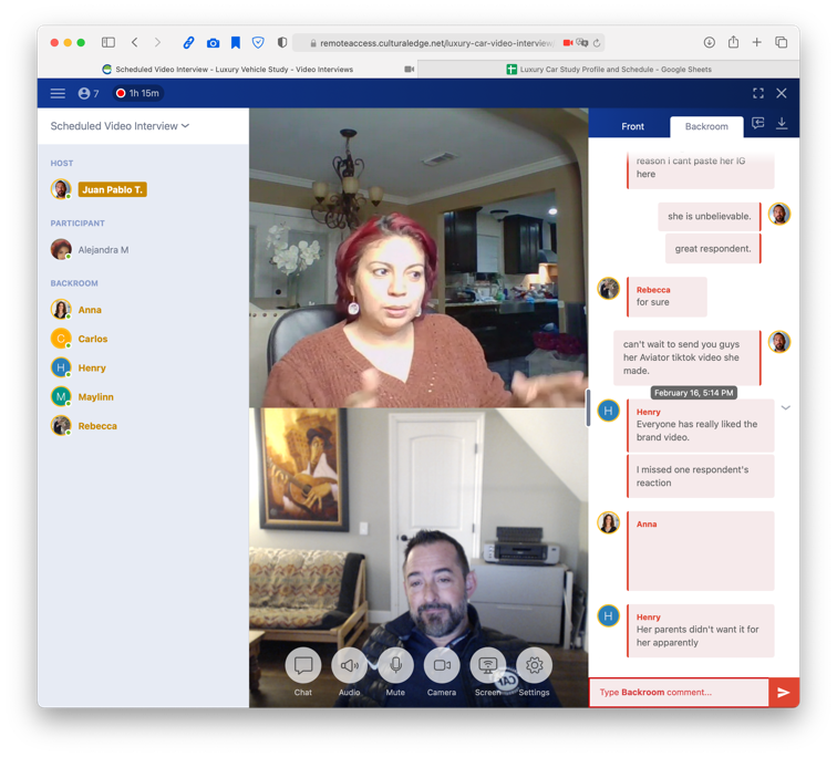 Live video group (or one-on-one) discussions conducted virtually with a one-way client backroom for observers. Simple, easy to use interface for both client observers and participants makes for insightful conversations and deeper insights. Bring your own snacks. LEARN MORE